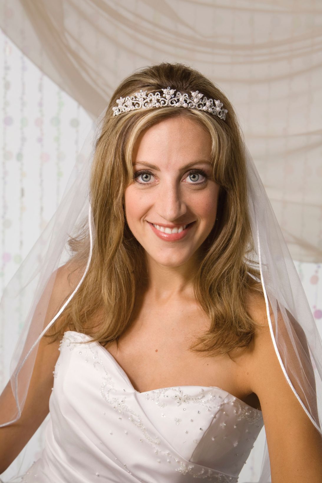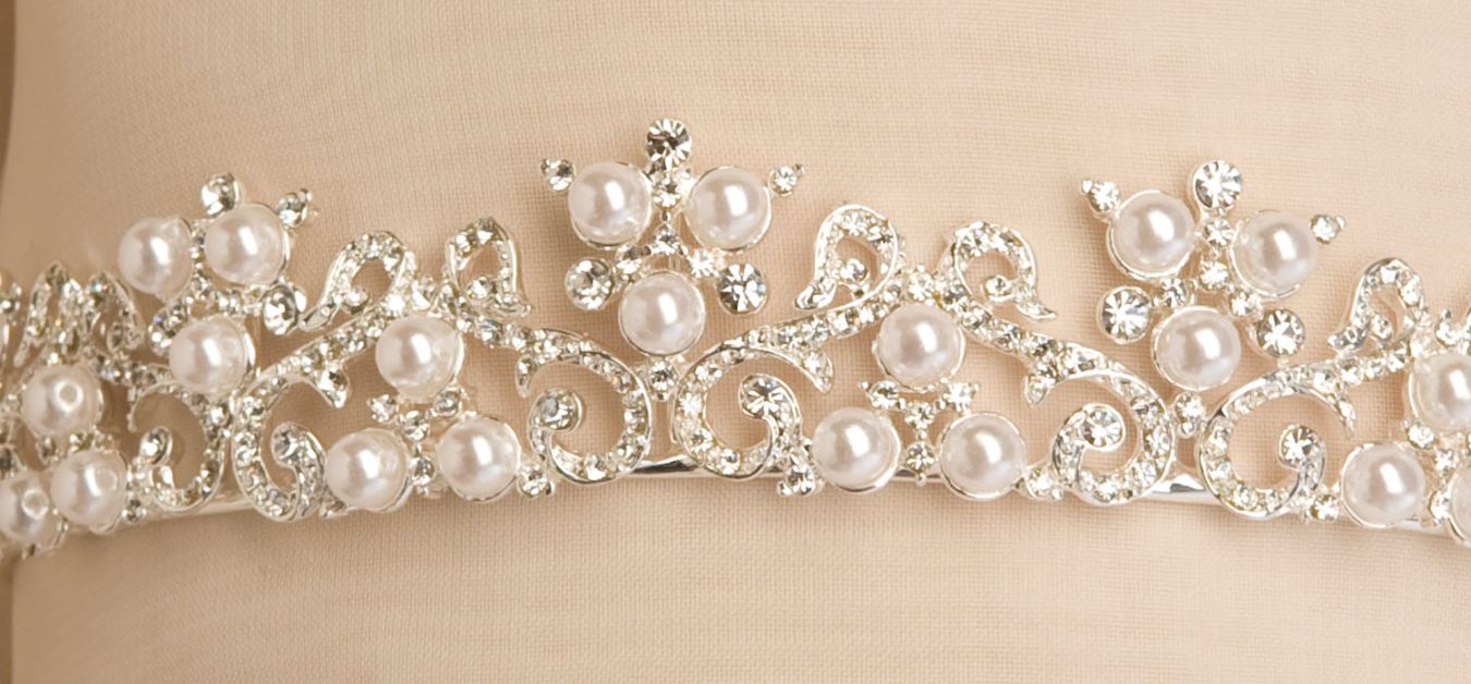 Spring 09 wedding tiara has Pearls, and Cubic Zirconium rhinestones.
